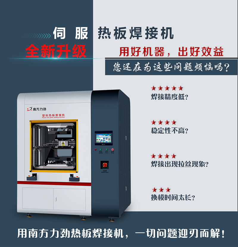 鑒于此,南方力勁機械有限公司成功開發了新款塑料熱板焊接機,具有傳統塑料熱板焊接機所不具有的優勢,與同行的設備相比,南方力勁的設備更具有優勢。適用于焊接汽車行李箱等大型的塑料件,焊接出來的行李箱焊線均勻,表面光滑;并且焊接精度高,具有良好的水密性和氣密性,大大提升了行李箱的品質,為企業創造更多的利潤奠定了產品基礎。