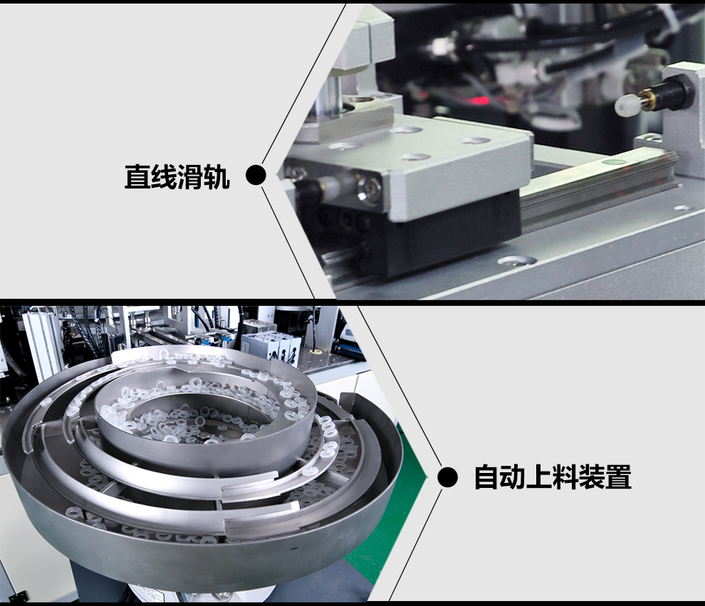 精密輸液器的滴頭過濾部分全自動組裝,實現組裝產品的全自動上料、組裝、粘合、檢測、下料、以免手工操作帶來的二次污染。采用各個模塊集成組裝,便于設備的拆分、維修以及機構的單獨運行,與前序機器實現聯機